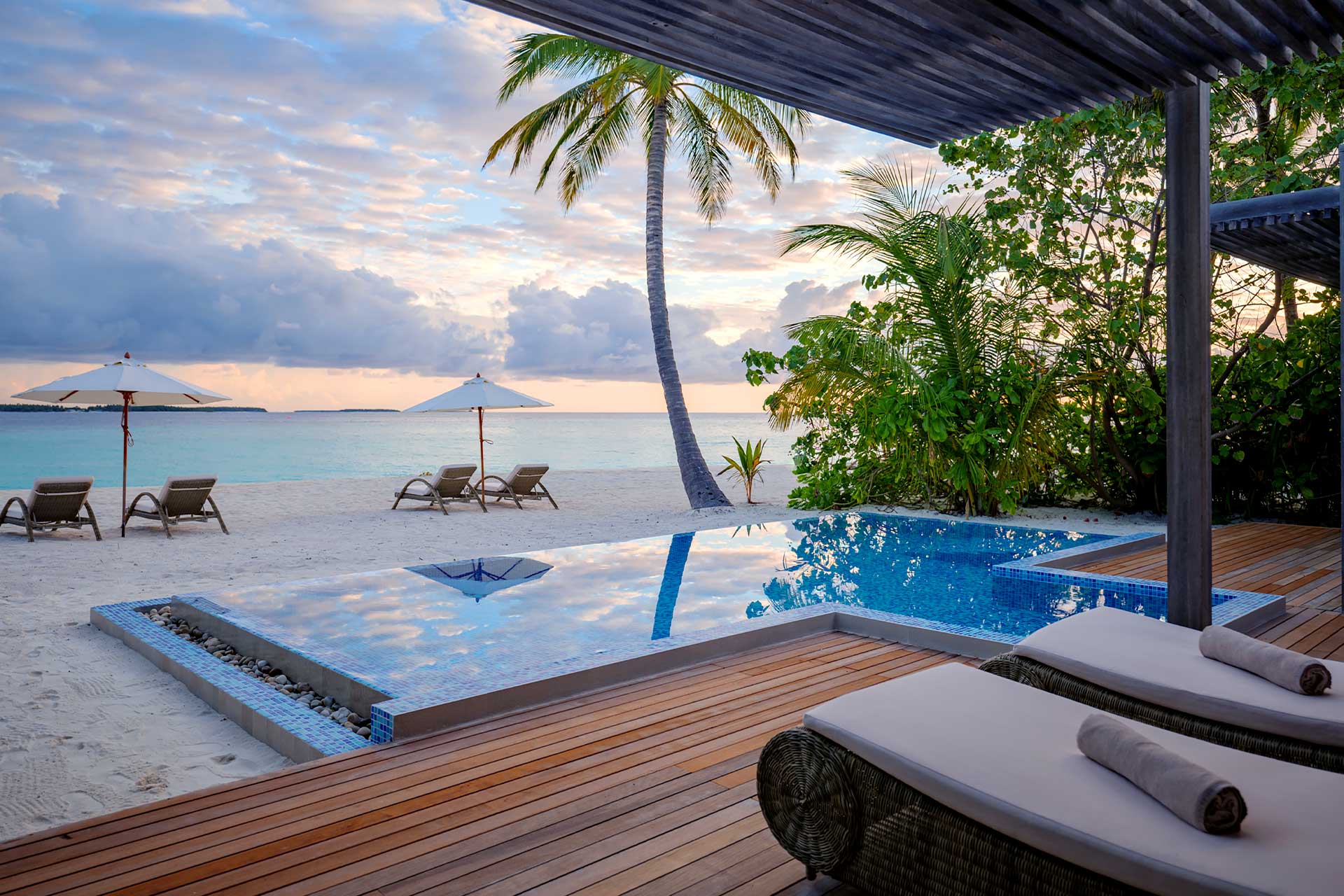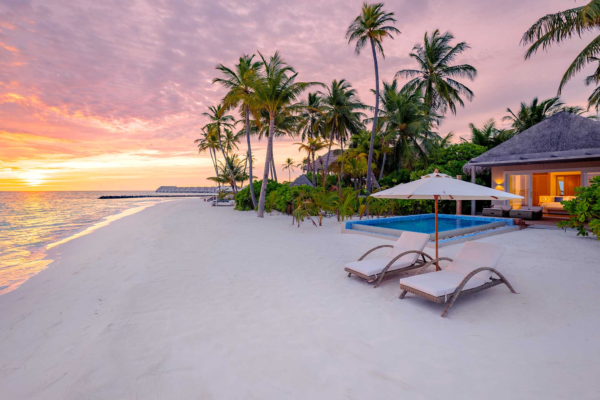 Enhanced beach villas at Baglioni Resort Maldives designed for intimate getaways with superior amenities and spacious layouts perfect for relaxation and romance.