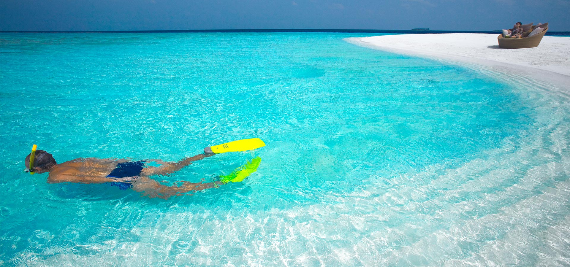 Nearby Day-Trip Ideas — Two-reef snorkel safari, evening dolphin cruise, Malé city tour, or a sandbank dinner under the stars.