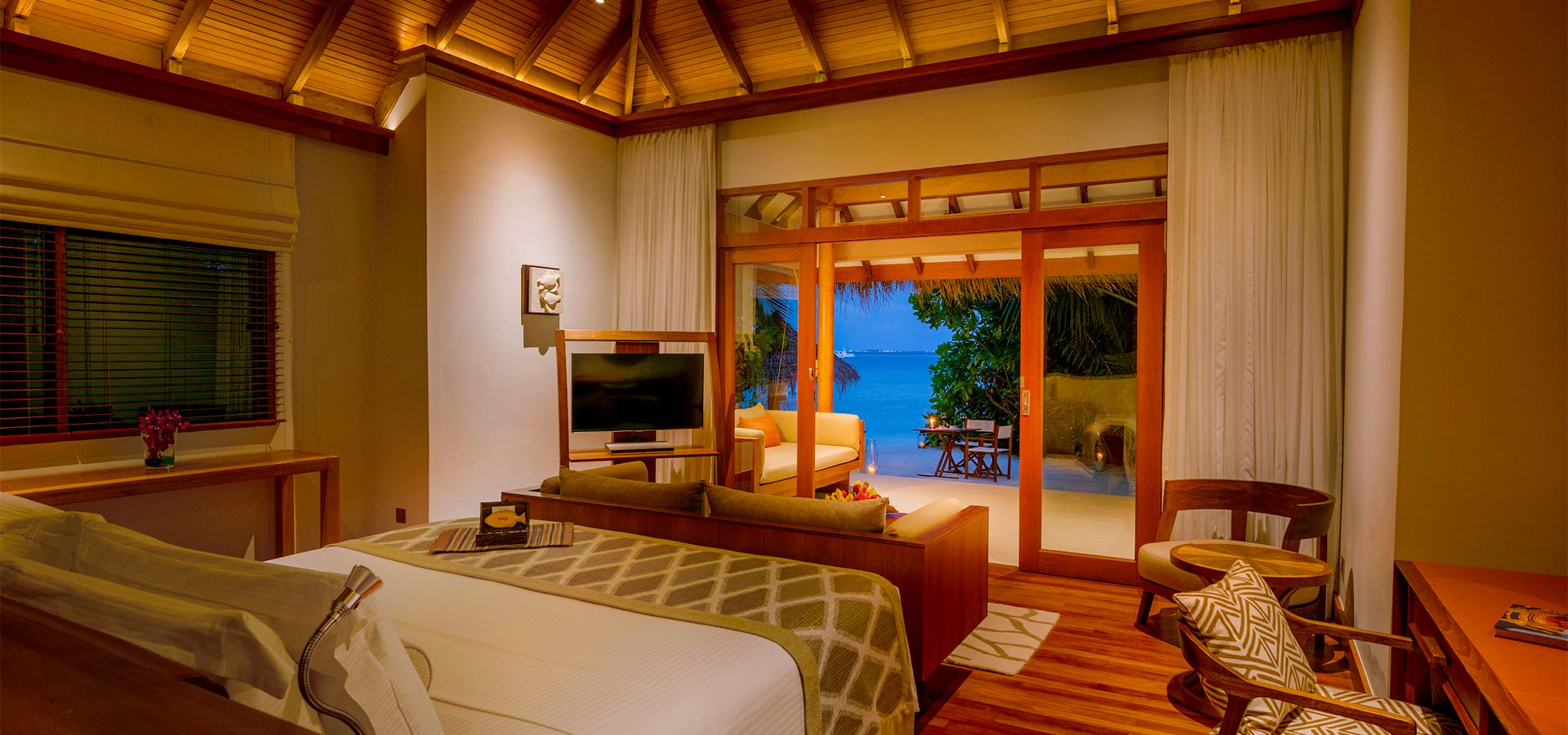 Location tips — Reef-side water villas suit keen snorkelers; beach villas in the inner lagoon offer calmer water on breezy days.