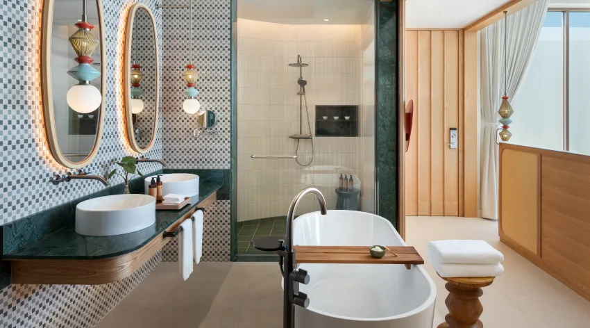 Standard Amenities: All villas include king or twin beds, air conditioning, minibar, tea/coffee facilities, flat-screen TV, complimentary Wi-Fi, bathroom with Jacuzzi, premium bath amenities, and 24-hour room service.