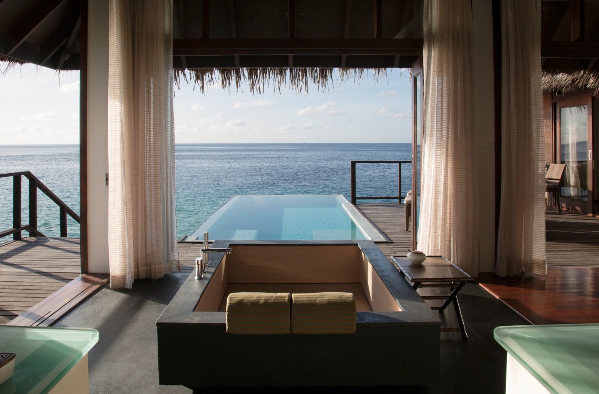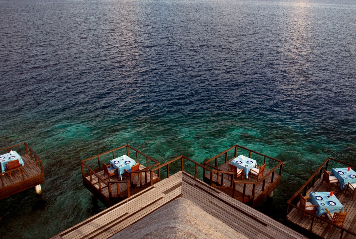 The island combines spacious beach and overwater villas—most with private pools—with strong house-reef snorkeling, a dedicated dive center, and several dining venues.