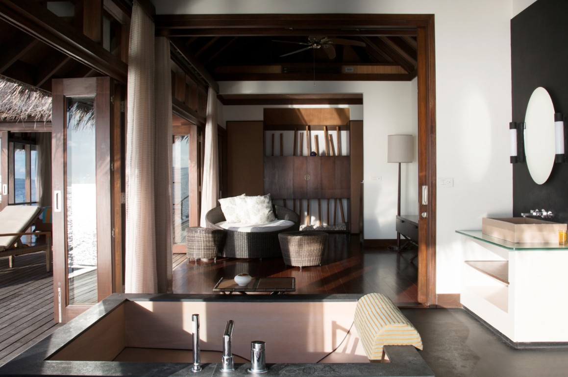 All villas at Coco Bodu Hithi feature air conditioning, Wi-Fi, TV, minibar, indoor/outdoor lounging spaces, and private outdoor areas.
