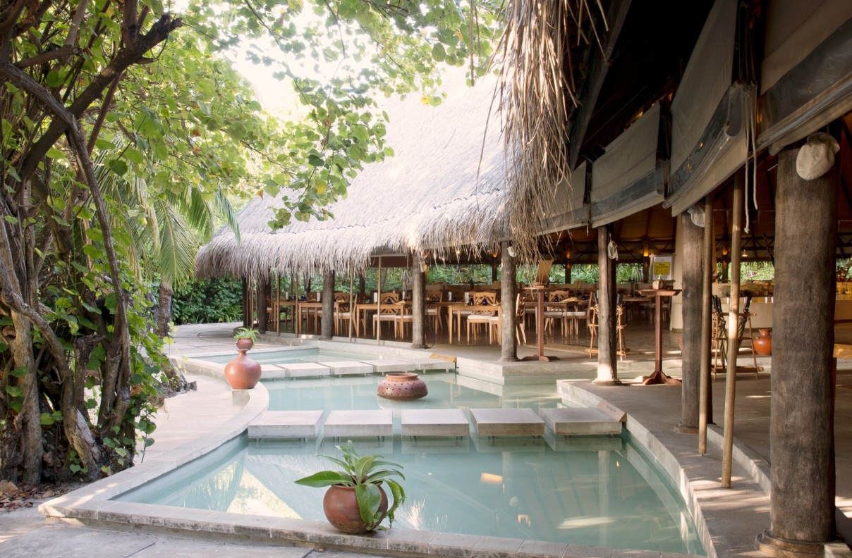 • Main restaurant with high palm-thatched roof
