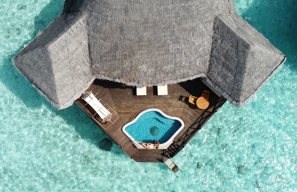 • Overwater villas arranged in palm-leaf shape