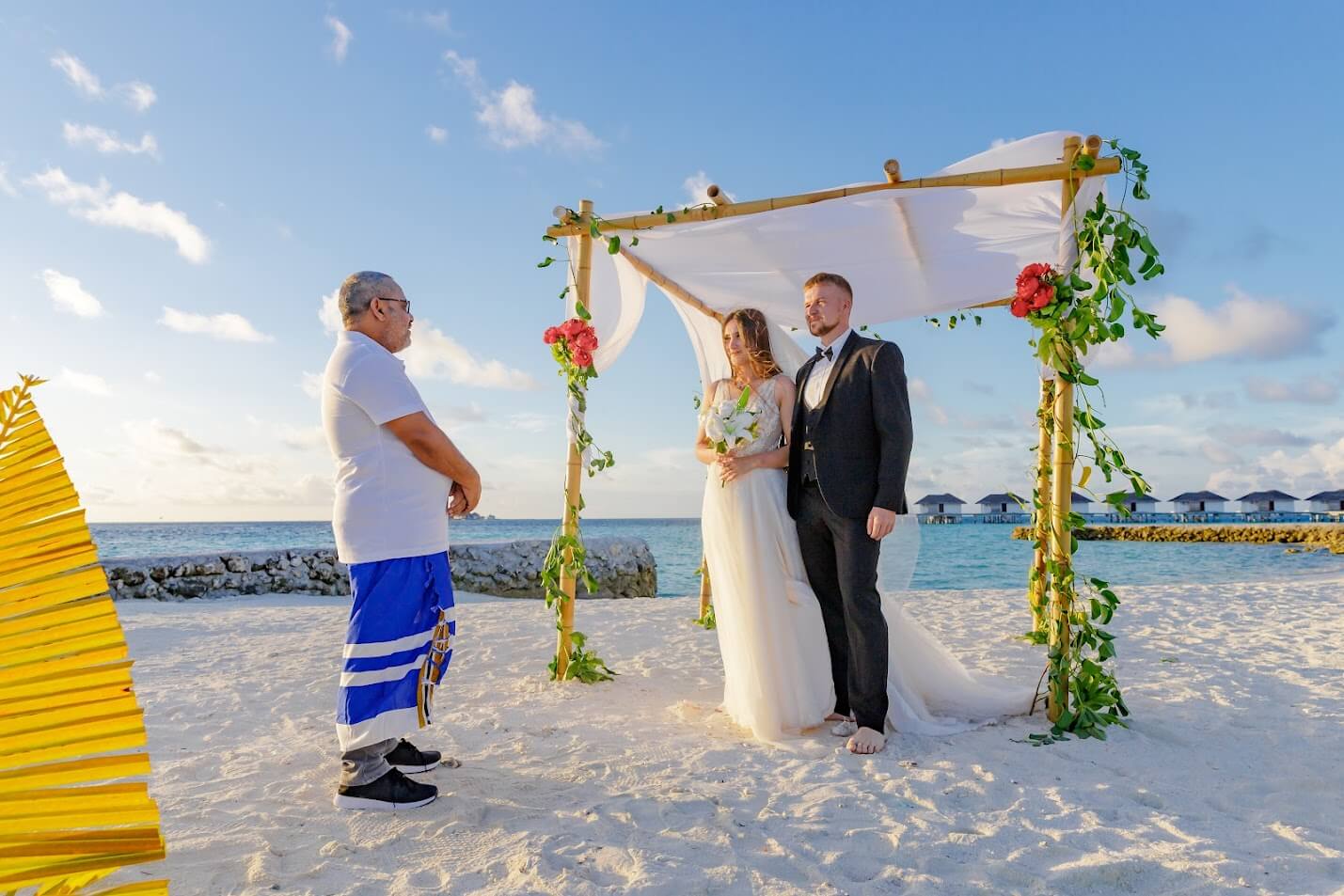 Symbolic ceremonies on the beach or jetty with décor and photography.