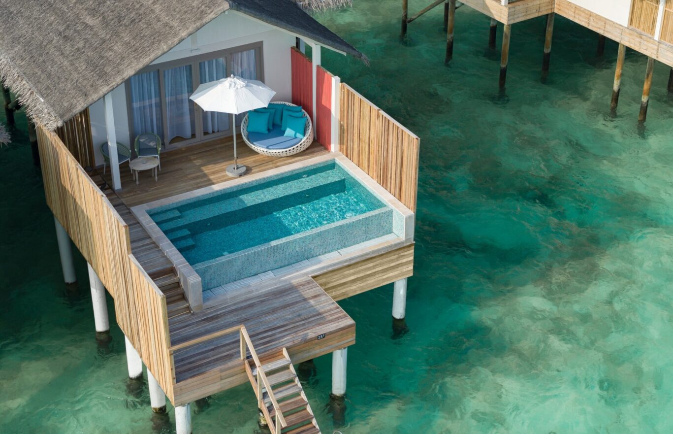 Layouts and inclusions vary by category; confirm the exact view, bed type, and pool details when booking Cora Cora Maldives.
