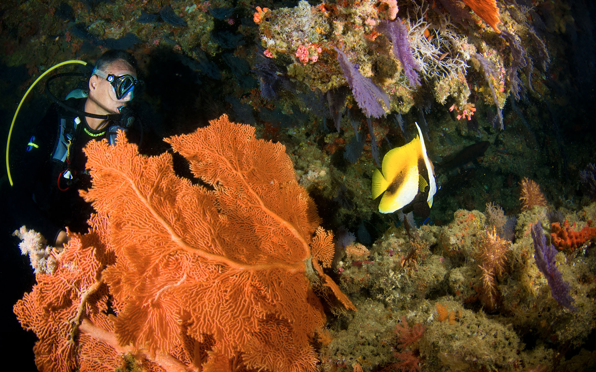 Sea temperatures are warm year-round; visibility shifts with currents and wind.