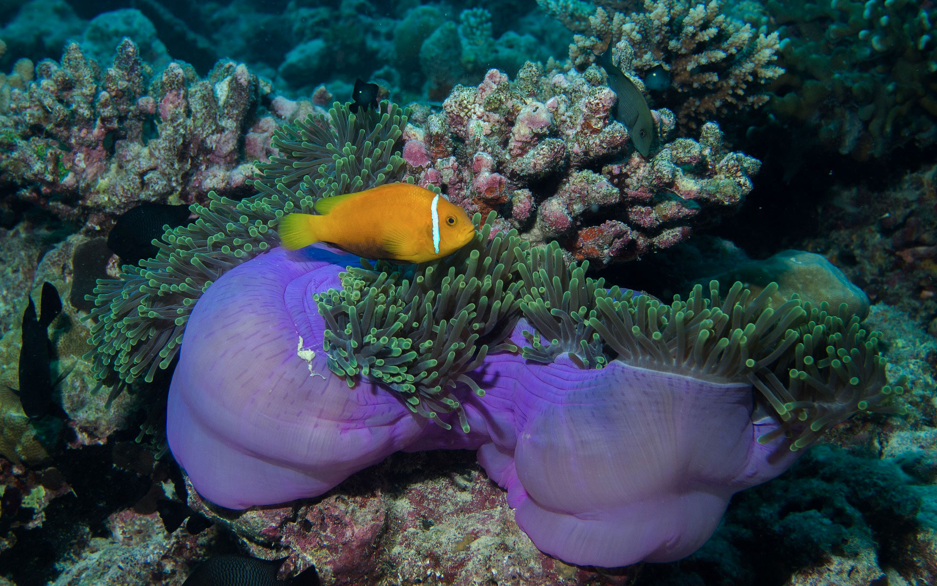 Guided snorkels at coral gardens; night snorkelling by arrangement.