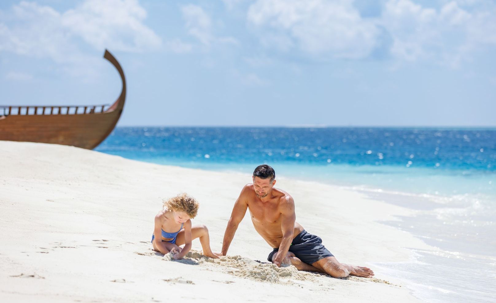 Yes. Beach pavilions and two-bedroom villas suit families, and the kids’ club runs daily programs.