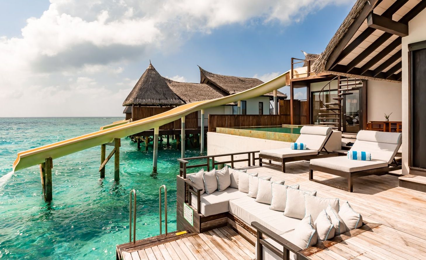 Selected Ocean Pool Suites include a private slide from the deck into the lagoon.